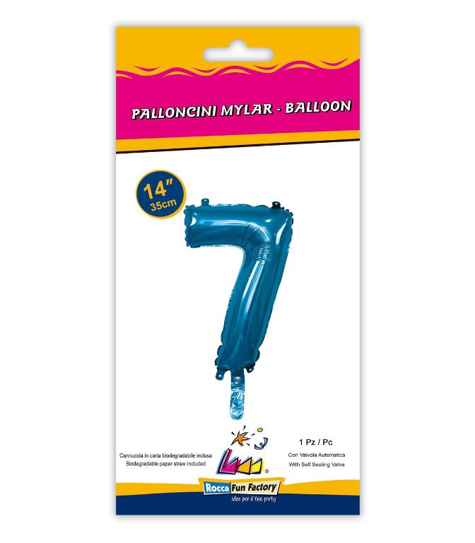 Pallone mylar numero 7 blu mini 14”-35cm con valvola