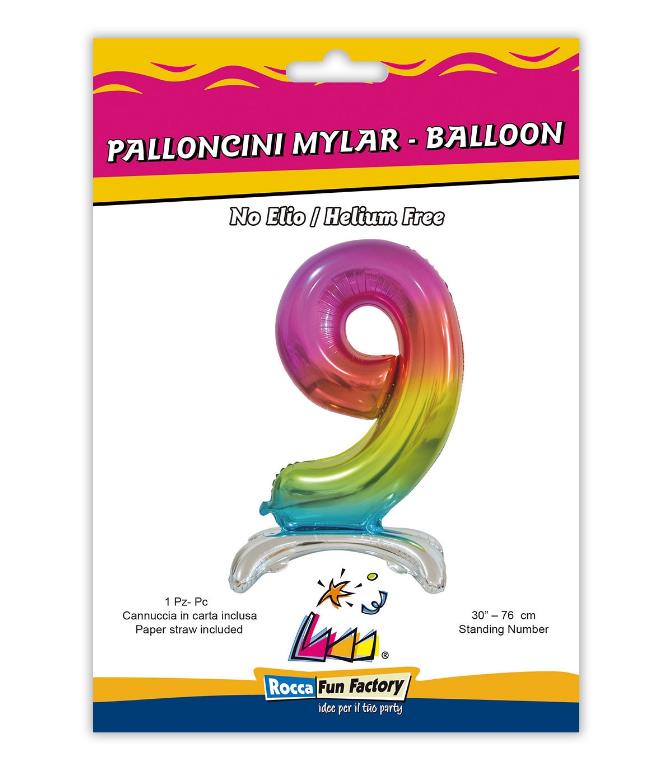 Pallone mylar numero 9 standing rainbow mega 30”-76 cm