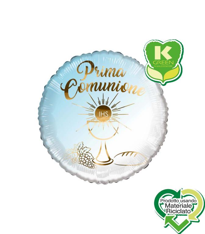 Pallone mylar prima comunione celeste tondo k-green 18”