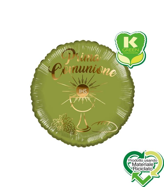 Pallone mylar prima comunione verde oliva tondo k-green 18”