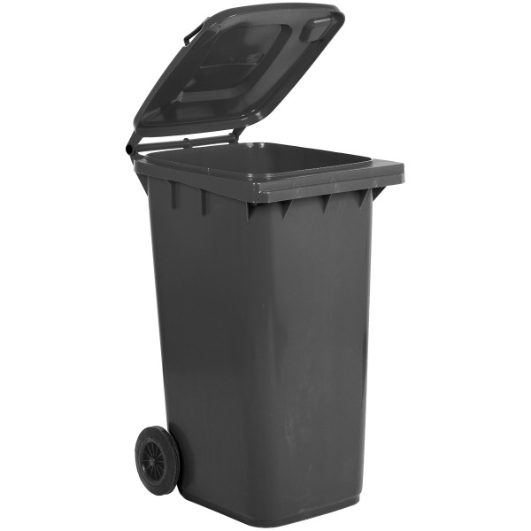 Bidone carrellato a due ruote in polietilene alta densita’, per raccolta differenziata completo di coperchio. Capacità 240 litri. Assale in acciaio zincato 40 micron. Ruote in gomma ø 200 mm. Dimensioni 57 x 73 x h 107 cm. Capacita’ max di carico 116 Kg. Colore grigio. Peso 13 Kg.