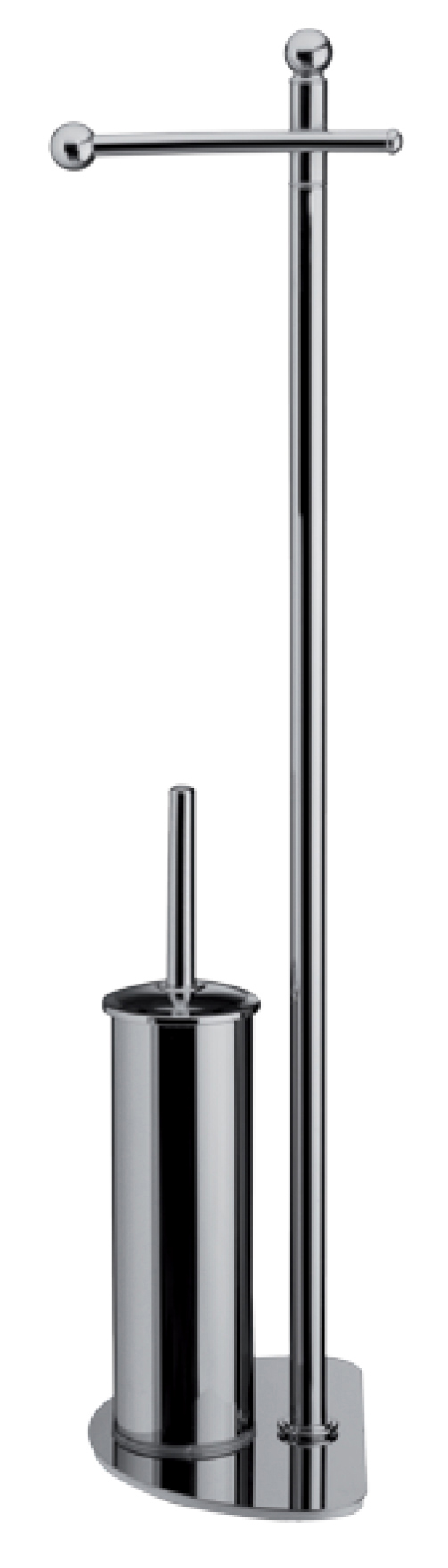 Fig. 3 portarotolo + portascopino. Base salvaspazio piatta in acciaio inox. Altezza 79 cm