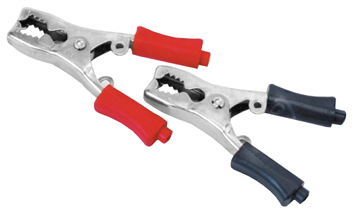 Morsetto carica batteria 40 A. Apertura morsetto 20 mm. Spessore 0,7 mm. Molla 1,7 mm e rivetto 3×17 in acciaio zincato bianco. Dimensioni 85×60 mm. Manopole in PVC rosso o nero.