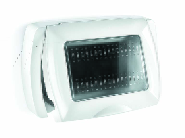 Serie MY LIFE BOX SYSTEM placca autoportante con portello. Per apparecchi tipo My Life a 3 moduli Colore bianco