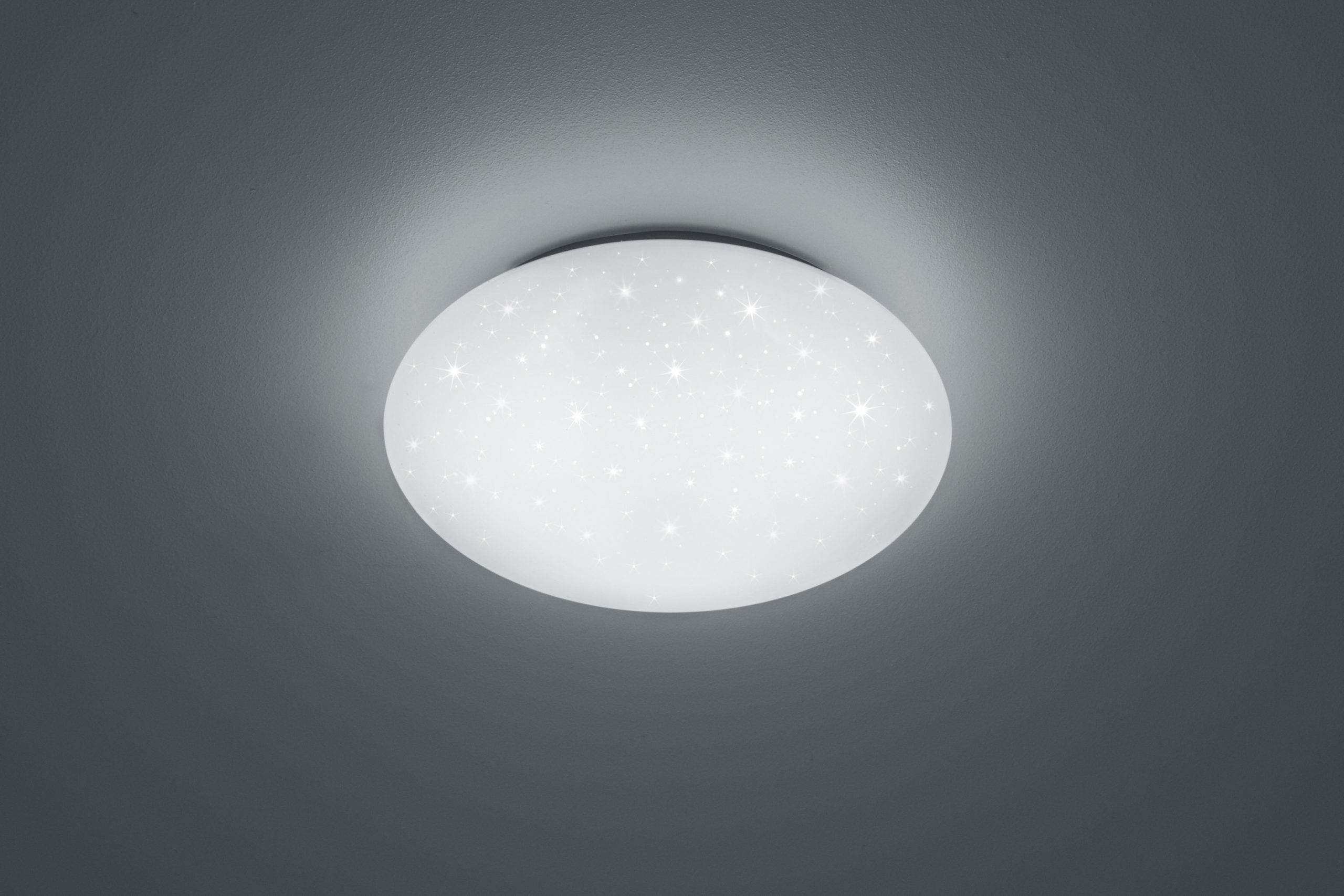 montaggio a soffitto. Con diffusore in metacrilato effetto cielo stellato. Lampadina smd led 15W – 1500 Lm – 4000 K luce naturale 230V – 50 Hz – IP44. Non dimmerabile. Dimensioni 370 x h 80 mm. Colore bianco. Peso 0,55 kg.