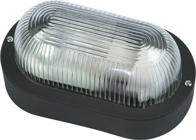 in materiale termoplastico. A norme EN 60598-1 e EN 60598-2-1 Portalampada E27 per lampade ad incandescenza (max 60 W) o a basso consumo (max 11 W). Grado di protezione IP 44 Base mm 188x120x90h Colore nero