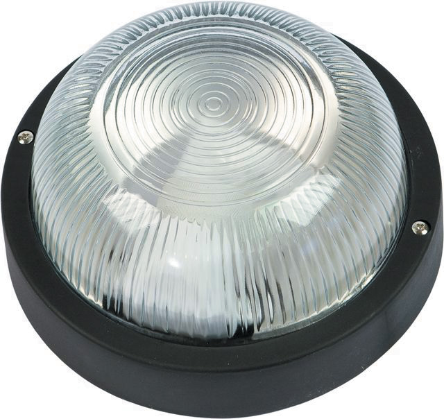 in materiale termoplastico. A norme EN 60598-1 e EN 60598-2-1 Portalampada E27 per lampade ad incandescenza (max 60 W) o a basso consumo (max 11 W). Grado di protezione IP 44 Base ø mm 188x90h Colore nero