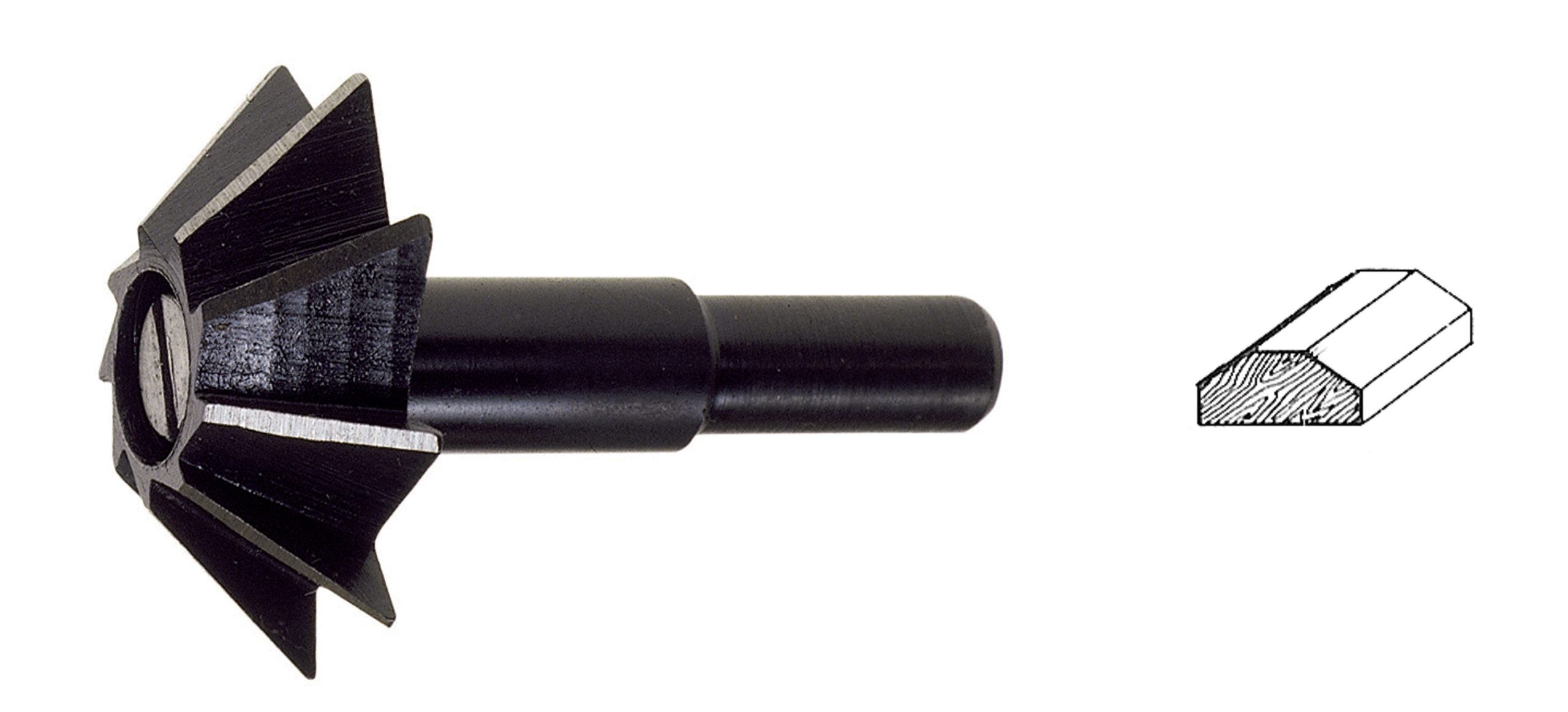 Art. 365.00 Per uso con trapani a colonna oppure con fresatrice. Per ogni tipo di legno. gambo 8 mm. Velocit 3300 giri/min. Diametro 35 mm conica 45