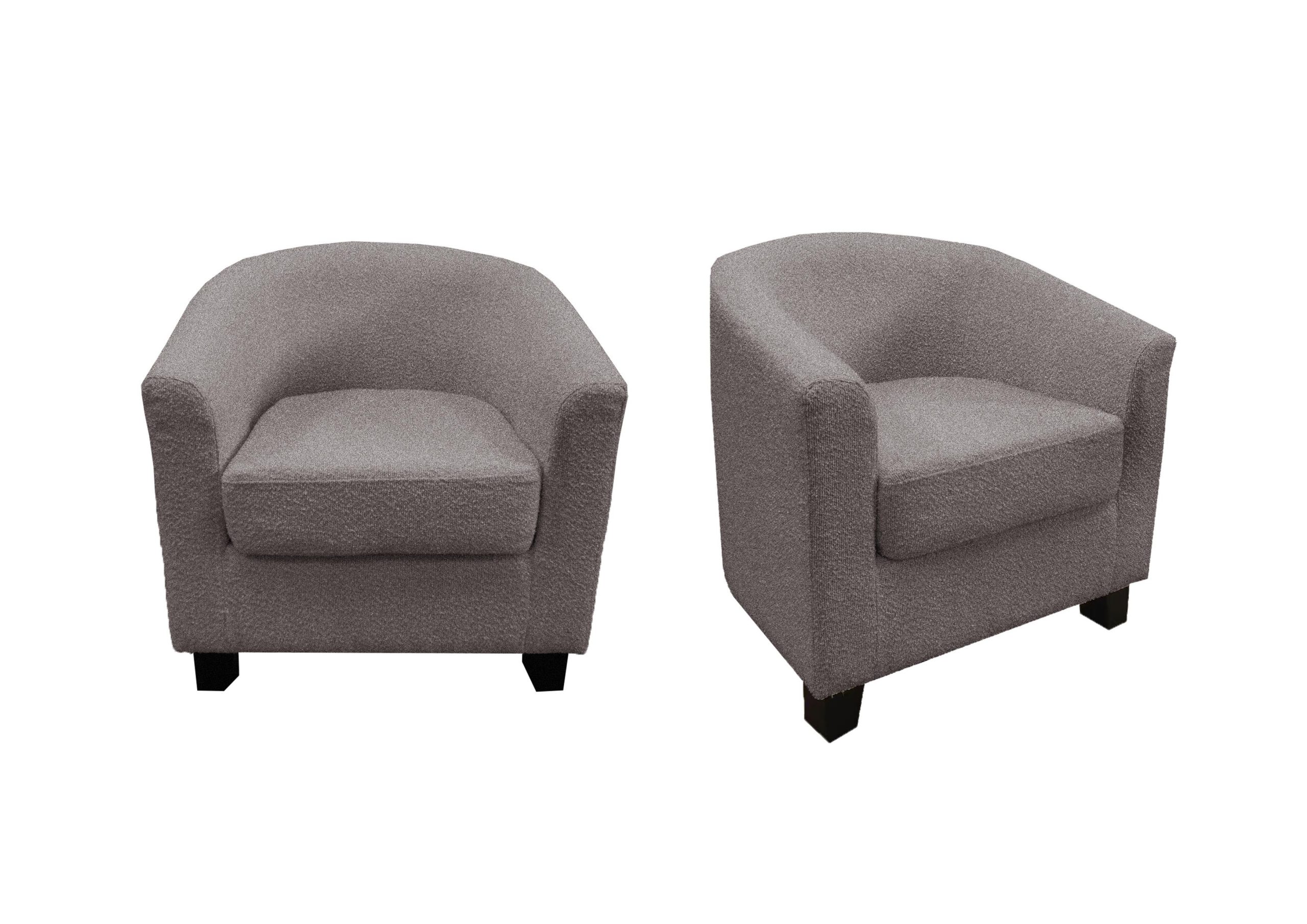 Poltrona Majastruttura in legno, rivestimento in tesssuto bucle.Piedini in legno scuro.Dimensioni cm 70x63x59+ (9 piedi)Colore grigio chiaro
