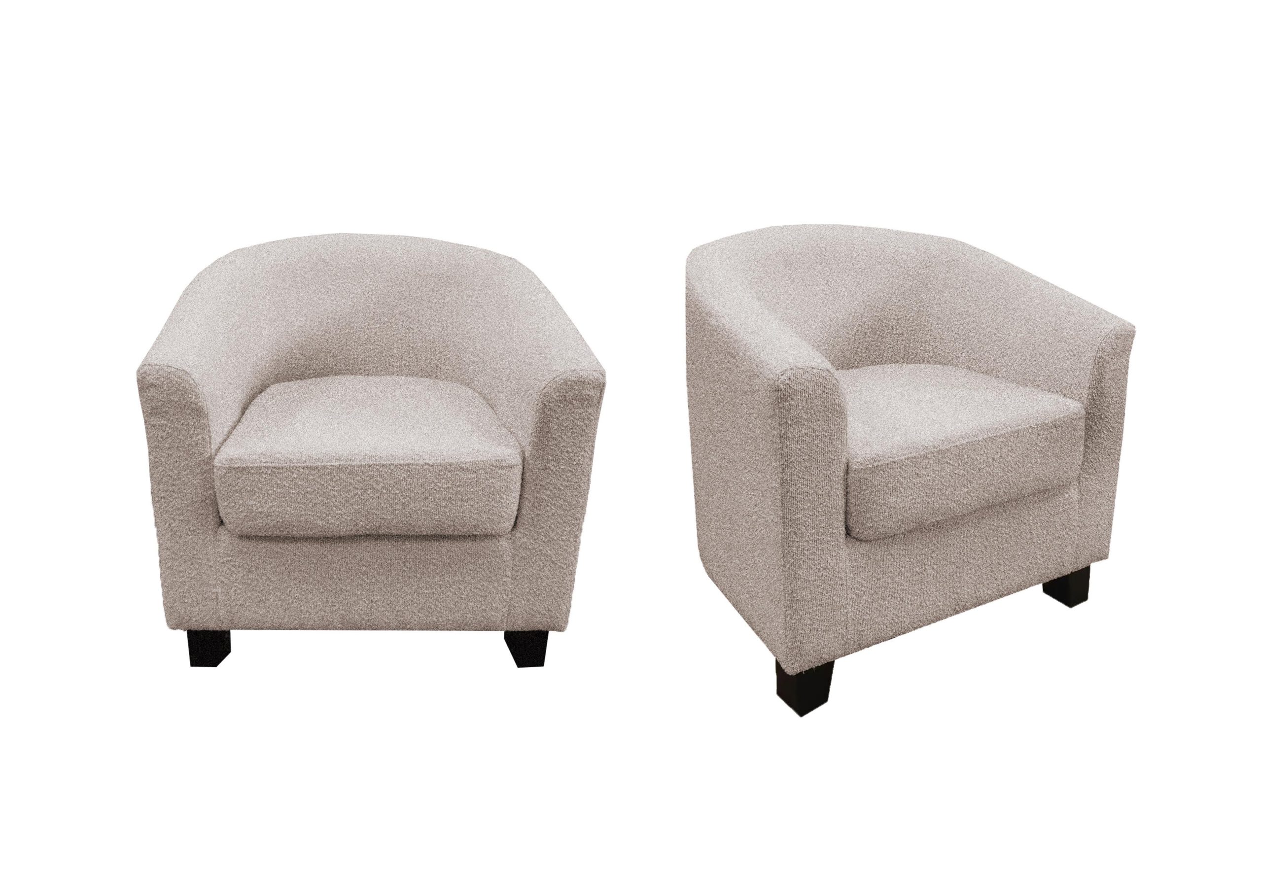 Poltrona Majastruttura in legno, rivestimento in tesssuto bucle.Piedini in legno scuro.Dimensioni cm 70x63x59+ (9 piedi)Colore marrone chiaro