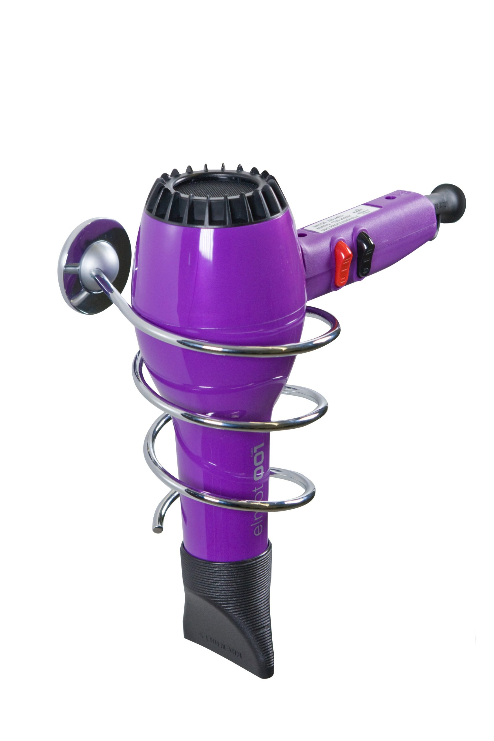 Pratico porta asciugacapelli a spirale da muro. Realizzato in metallo cromato. Dimensioni 11 x 15 x h 16 cm.