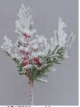 Rametto in PVC con Bacche Rosse e Rami Verdi Nevato cm.35