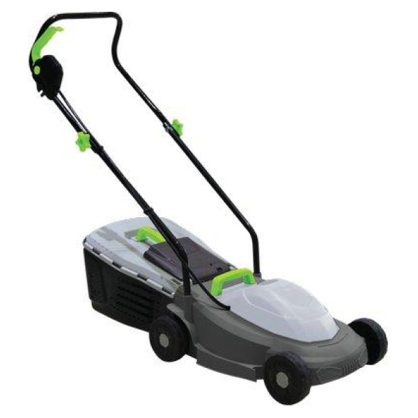 Potenza Watt. 1300. Regolazione altezza taglio su 3 posizioni Mm. 25-40-55. Sacco di raccolta Lt. 30. Struttura in materiale plastico antiurto. Impugnatura guida ripeigabile per un comodo stoccaggio e maniglia di sollevamento. Ideale per superfici fino a Mq. 350.