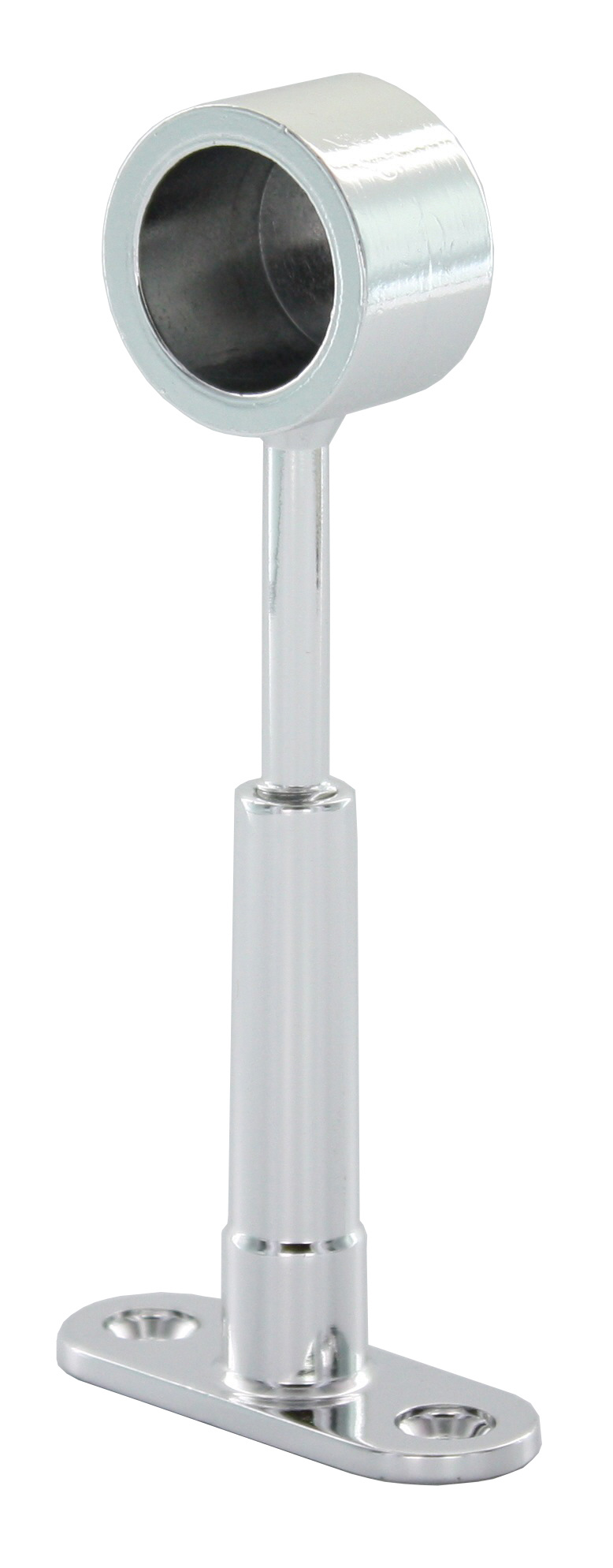 in zama chiuso su un lato. Finale, regolabile 46/73 mm. Diametro 18 mm. Fissaggio 2 fori ø 4 mm. Finitura cromato.