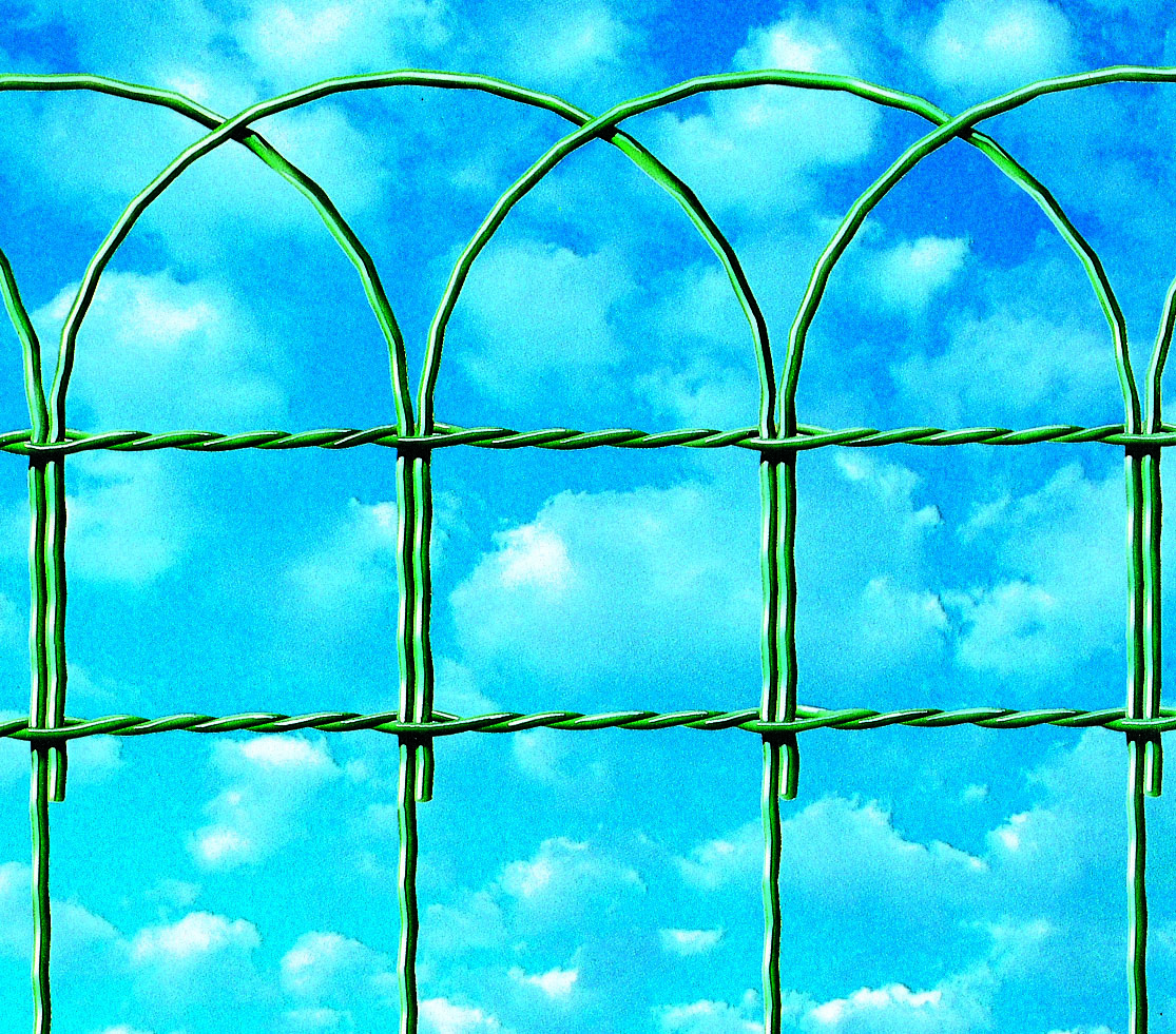 in filo di acciaio zincato e plasticato. Rete ornamentale. Diametro filo orizzontale 2,2 mm Diametro filo verticale 3,2 mm Altezza 65 cm Peso 13 kg Colore Verde Alpi Rotolo da 25 m controllato