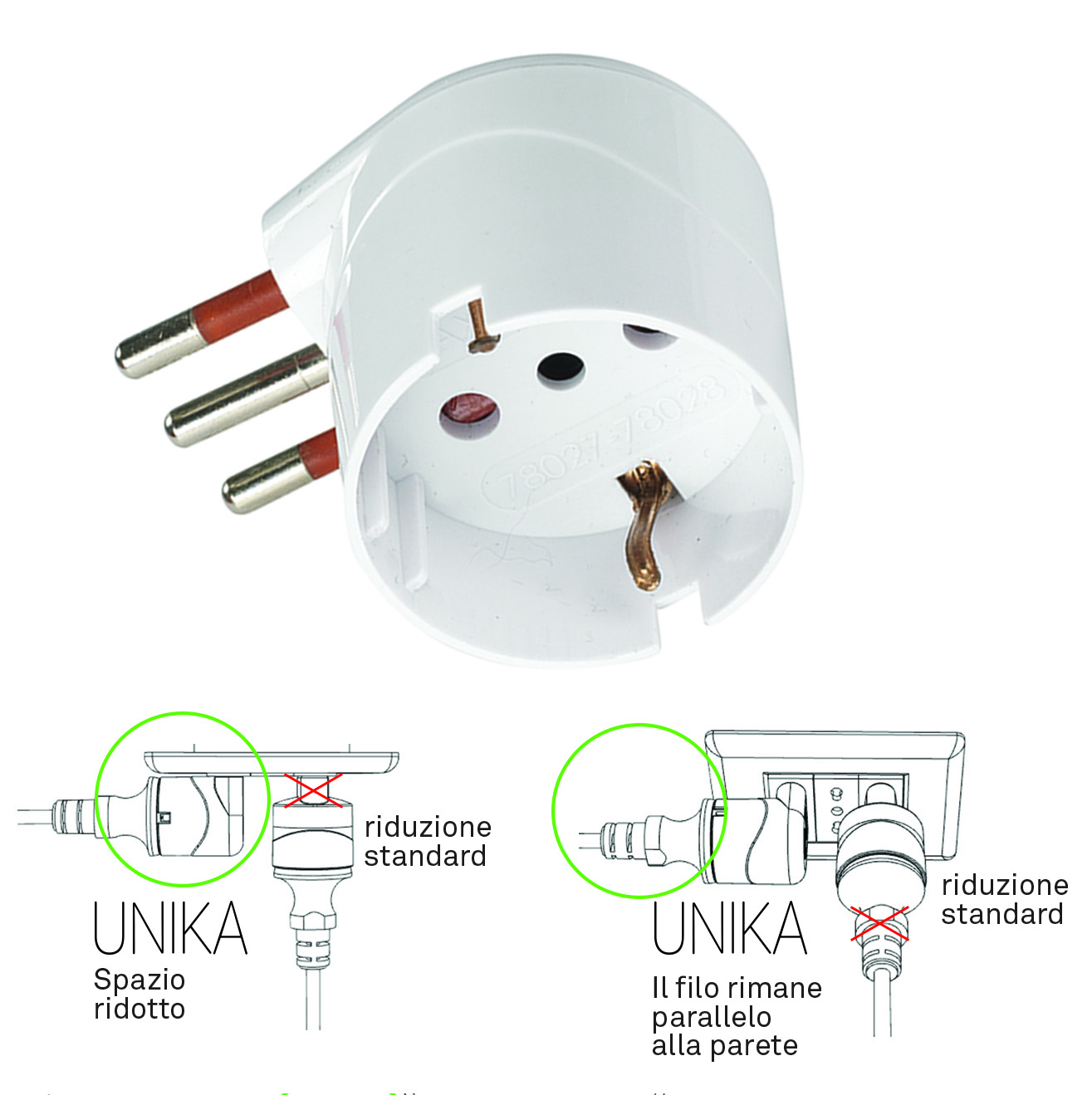 Art. RS78029 salvaspazio. – spina 16A – presa 16A 2P + T