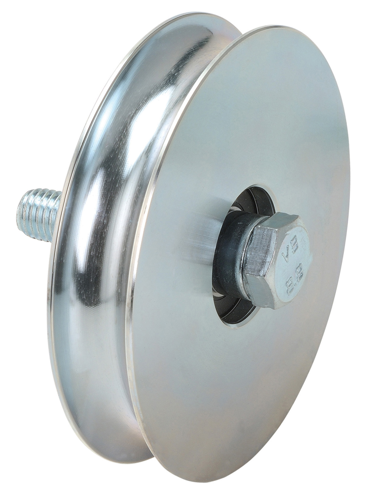 Art. 400 in acciaio zincato. A 1 cuscinetto. Gola tonda diametro 20 mm Diametro ruota 80 mm