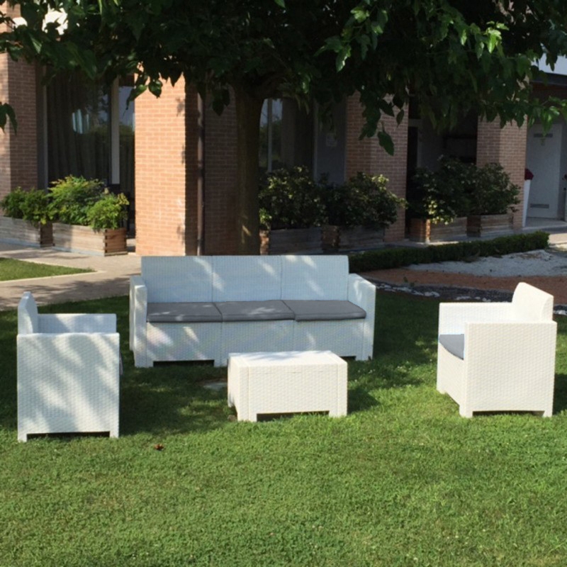 Poltrone per ufficio – Salotto resina nebraska 3 4 pz c/cuscini biancoID: 95615 – Rif: 9068