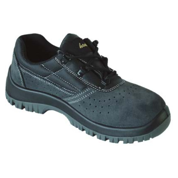 Con tomaia in pelle scamosciata. Classe di protezione S1P: puntale resistente ai 200J in acciaio; antistatica; suola resistente agli idrocarburi; soletta antiforo in acciaio; suola antiscivolo (SRC); sistema di assorbimento dei traumi nella zona del tallone. Con sistema Anti Shock e suola in poliuretano a doppia densità. Colore: grigio.