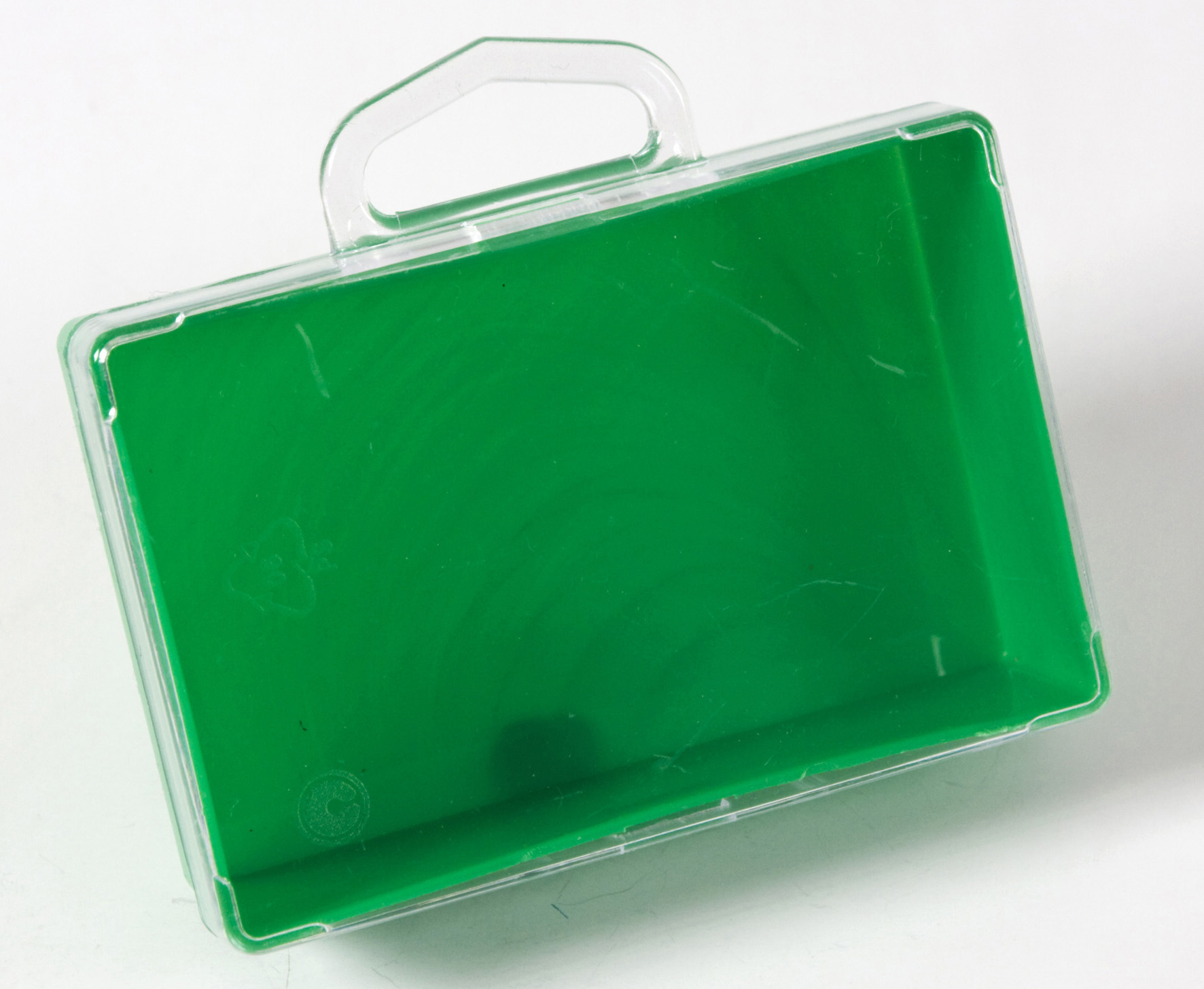 in plastica, fondo colorato e coperchio trasparente. Dimensioni 105x30x70h Colore verde