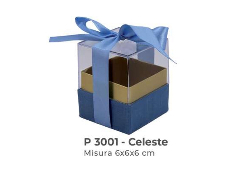 Scatole PLEX 6x6cm base velluto e fiocco CELESTE 6pz
