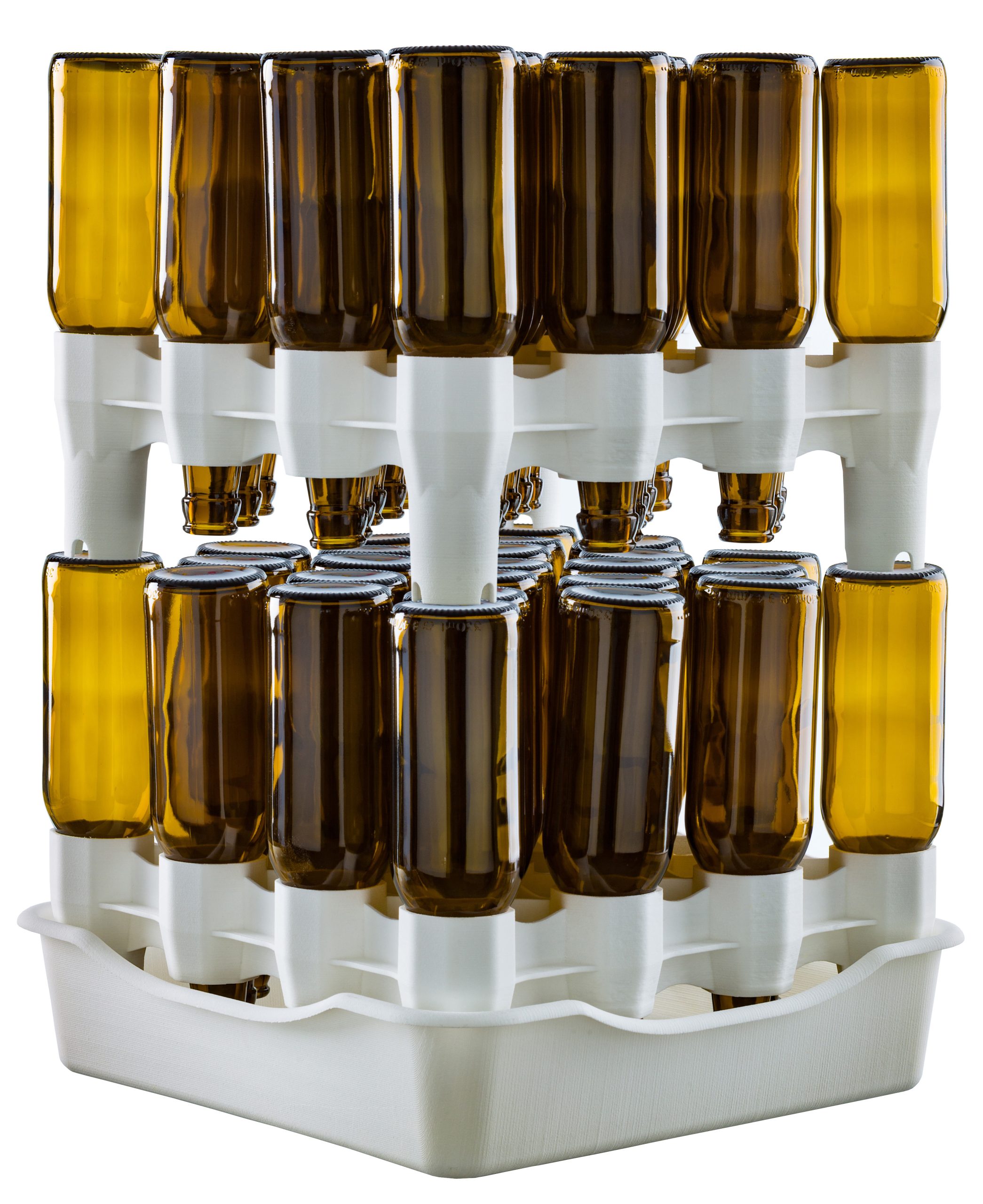 Mod. EASY DRAINER Art. 13002 in ABS antiurto, alimentare, componibile. Set composto da 2 moduli che possono alloggiare 32 bottiglie di vino o 50 bottiglie di birra. Sovrapponibile fino a 7 livelli. Con bacinella