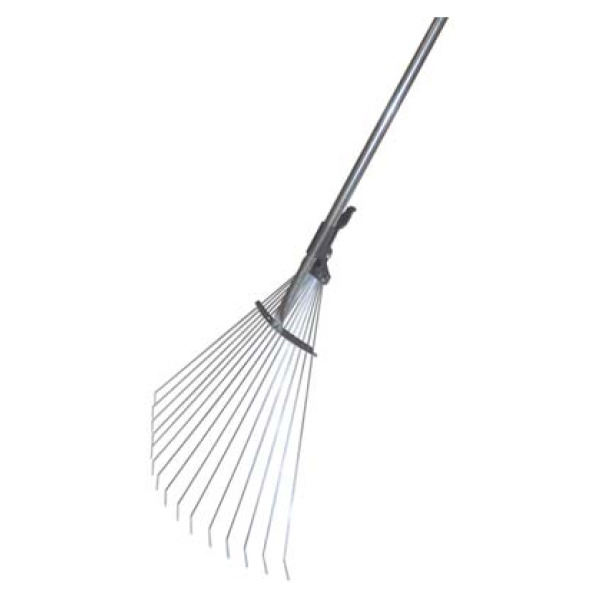 Con denti regolabili in acciaio zincato. Con manico fisso in acciaio.
