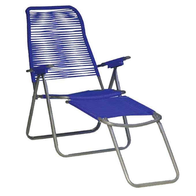 Sdraio con schienale reclinabile in 7 posizioni Fratelli Mora Srl, con poggiapiedi richiudibile, cordonata in filo plastico anallergico, portata 130 Kg.