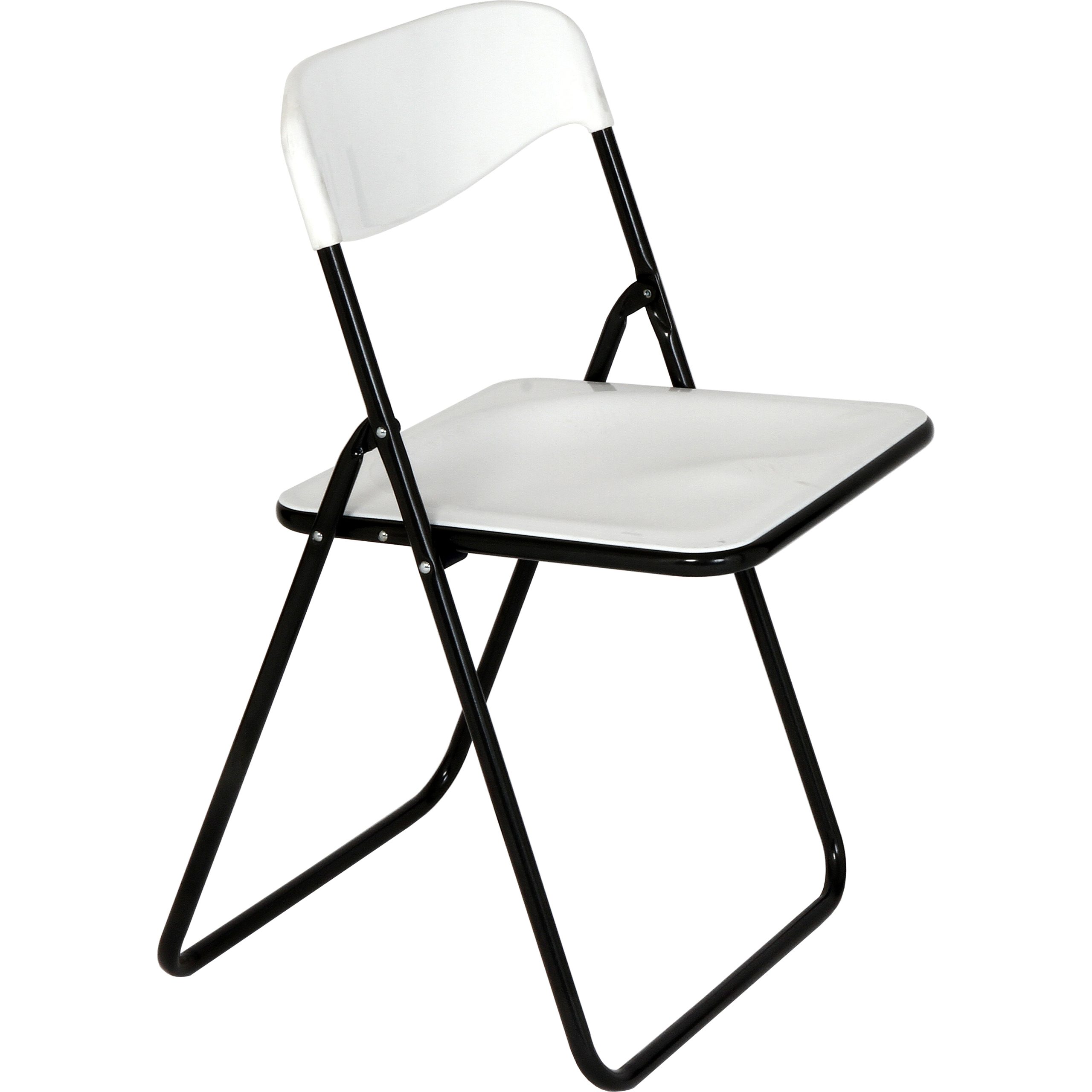 Sedile e schienale in plastica con telaio in metallo tondo ø 18 mm. Dimensioni aperta 46 x 50 x h 80 cm, chiusa 47 x 17 x h 92 cm. Colore bianco. Peso 2,8 kg.