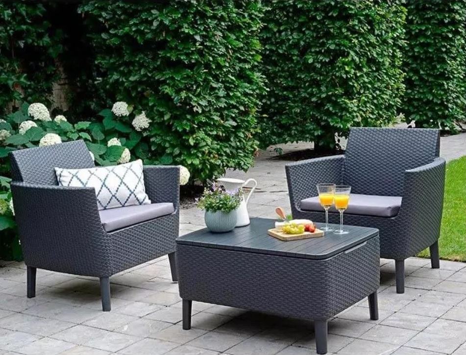 set composto da due ampie poltrone e un tavolo con funzione di contenimento.