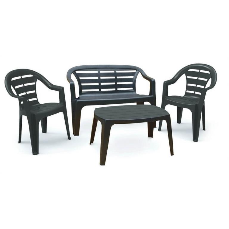 Set madura 1 panchina + 2 sedie + 1 tavolo monoblocco antracite