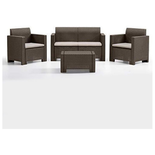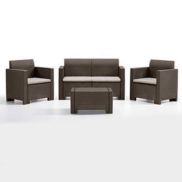 Questo salotto è leggero e resistente a urti e intemperie, ottimo come mobile da giardino o esterno.