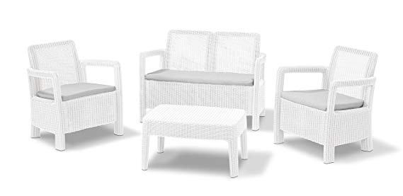Set salotto da giardino modello tarifa 4pz bianco con cuscini