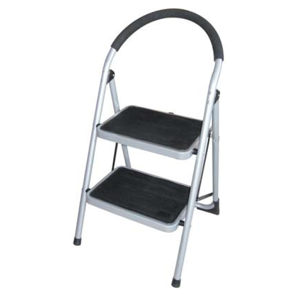 In acciaio. Piani antisdrucciolo. Gradino largo. Portata max Kg. 150.