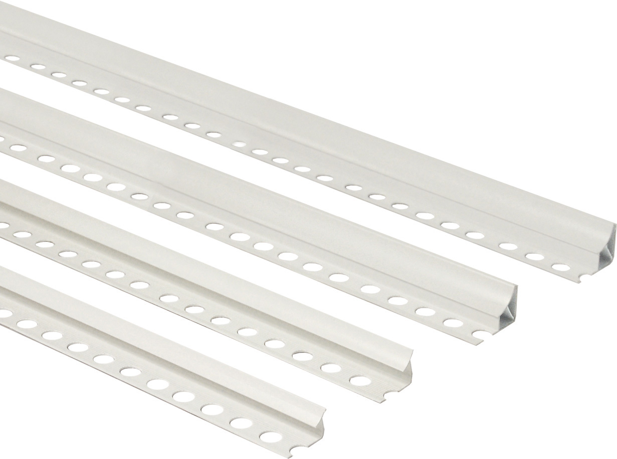 in PVC estruso antiurto, colore bianco. Per raccordare gli angoli interni delle pareti, evitando le inestetiche fughe fornendo una superficie omogenea e facile da pulire. Per pavimenti, rivestimenti di cucine, bagni e laboratori alimentari. Tipo universale. Per piastrelle con H 8 mm. Asta da 2,6 m