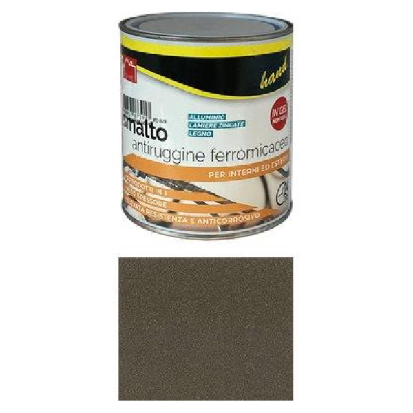 Smalto protettivo per ferro di colore satinato metallico con effetto finale simile al ferro battuto. Idrorepellente. Diluizione dal 5% al 10% con acquaragia o diluente sintetico. Resa: Mq./Lt.8-12.