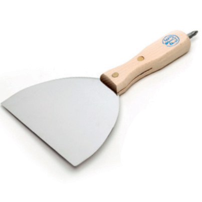 Art. 505/I lama in acciaio inox. Manico in legno con inserto cacciavite. Ideale per cartongesso. Dimensioni 150 mm