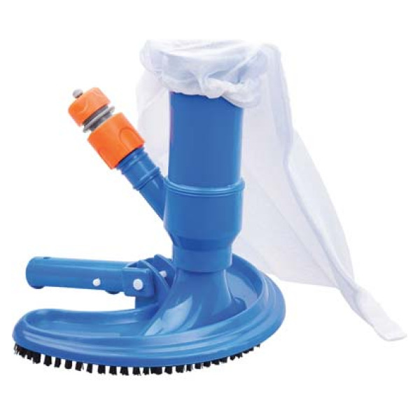 In ABS. Utile per la pulizia del fondo della piscina. Il sacco raccoglie i detriti presenti sul fondo. Attacco Mm. 28. Attacco tubo 1/2″.