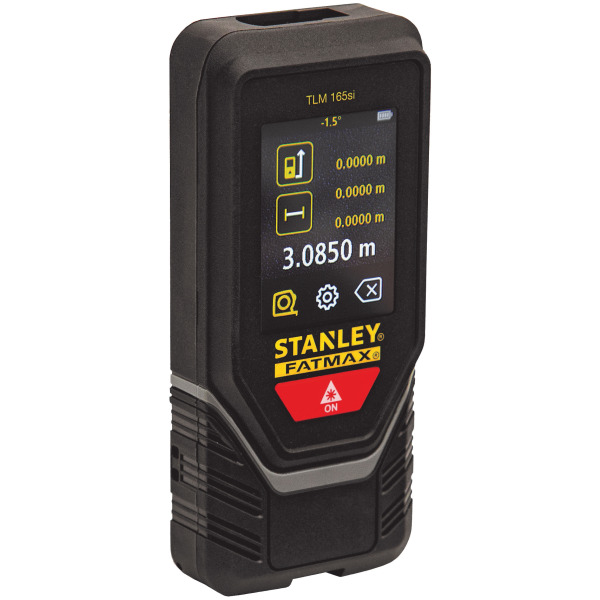 Art. 1.77142 Bluetooth. Alimentazione 2 batterie AAA. Portata da 15 cm a 60 m. Precisione 1,5 mm a 10 m. Funzioni distanza,area, volume, calcolatrice Pitagora (1,2), misura minima/massima. Struttura rivestita in gomma. Schermo nero con numerazione in bianco. Raccordo terminale pieghevole multifunzione – permette la misurazione precisa di angoli e infissi. Schermo e tastiera impermeabilizzati. Allarme sonoro che evidenzia le misurazioni effettuate. Display Touch retroilluminato per unottima leggibilit nelle misurazioni. Autospegnimento dopo 90 secondi. Ultimi 5 valori in memoria. Funzione Touch Screen. Connettivit Bluetooth per sincronizzazione con la nuova App STANLEY Smart Connect (gratuita). Protezione a pioggia e polvere (IP54). La confezione include batterie, fodero agganciabile alla cintura.