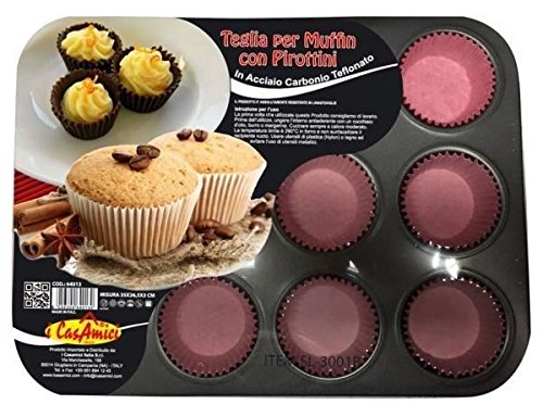 Stampo per forno 12 muffin con pirottini 35×26.5x3cm teglia antiaderente