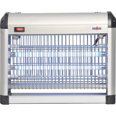 Con 2 Lampade UV. Pulsante On/Off e alimentatore 220-240V 50/60Hz. Scocca in alluminio. Completo di catena per appendere e cassetto estraibile per la pulizia.
