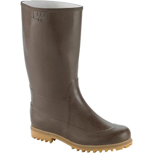 tomaia in gomma vulcanizzata. A ginocchio. Fodera interna in tela cotone. Senza plantare. Suola carrarmato in gomma preformata. Colore marrone. Numero 40