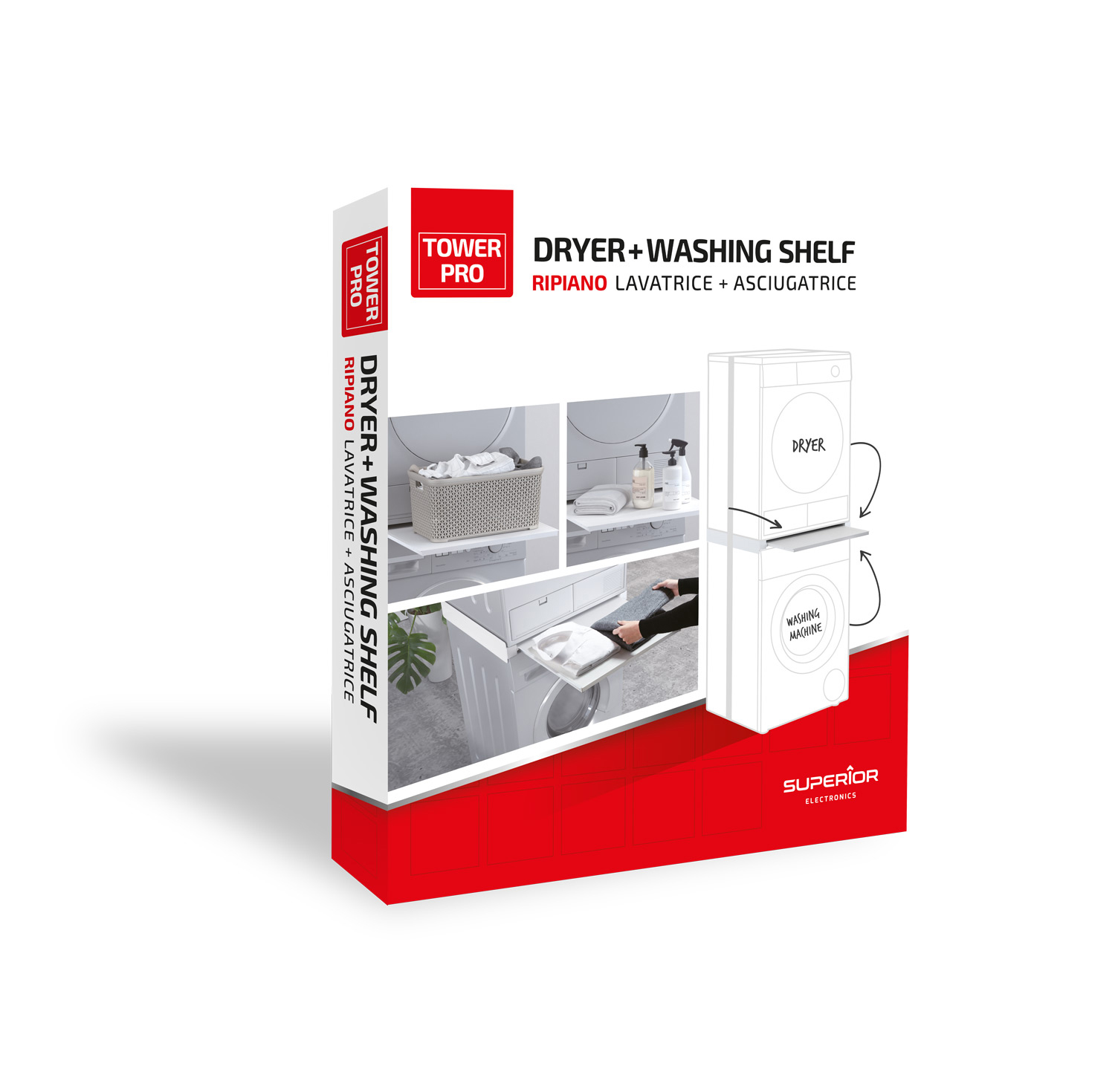 Kit colonna lavatrice/asciugatricesupporto per sovrapporre asciugatrice, con ripiano estraibileCompatibile con asciugatrici standard o slim a carica frontale con una profondita massima di 60 cmLarghezza 60 cm