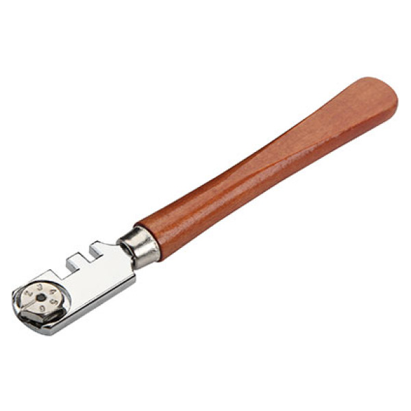 Finitura cromata. Con manico in legno. In dotazione 6 rotelline taglio di ricambio. In blister.