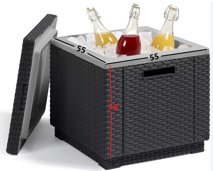 Tavolino contenitore di raffreddamento con cubetti di ghiaccio 42x42x41h