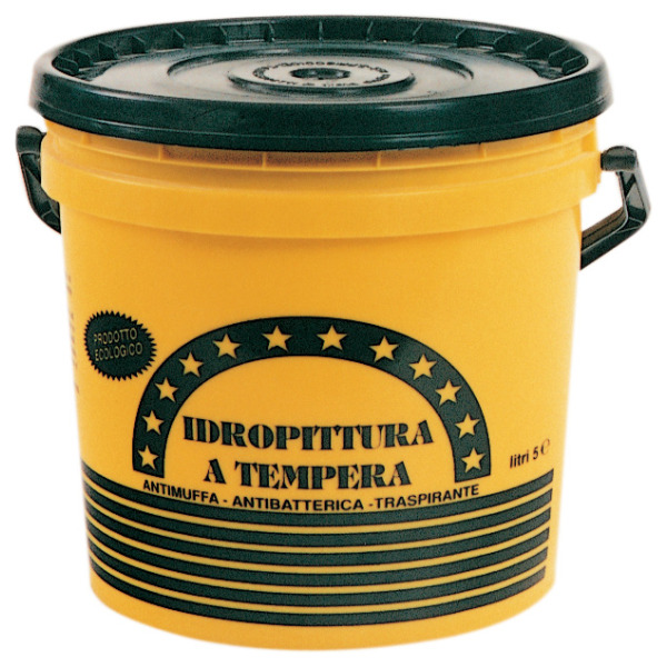 Mod. MAPEKOL sintetica a tempera. Traspirante da interni. Previene la formazione di muffe e batteri. Per bagni, cucine e soffitte. Diluizione con acqua al 15-20 secondo il tipo di applicazione. Essiccazione finale 24 ore. Sovrapponibile dopo 8-10 ore. Colore bianco. Fusto da 5 l