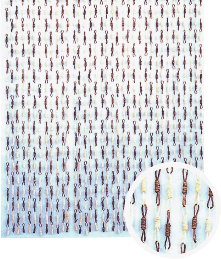 per porta, realizzata a fili con nodi in mais. Dimensioni 125 x h 240 cm. Disegno 01061.