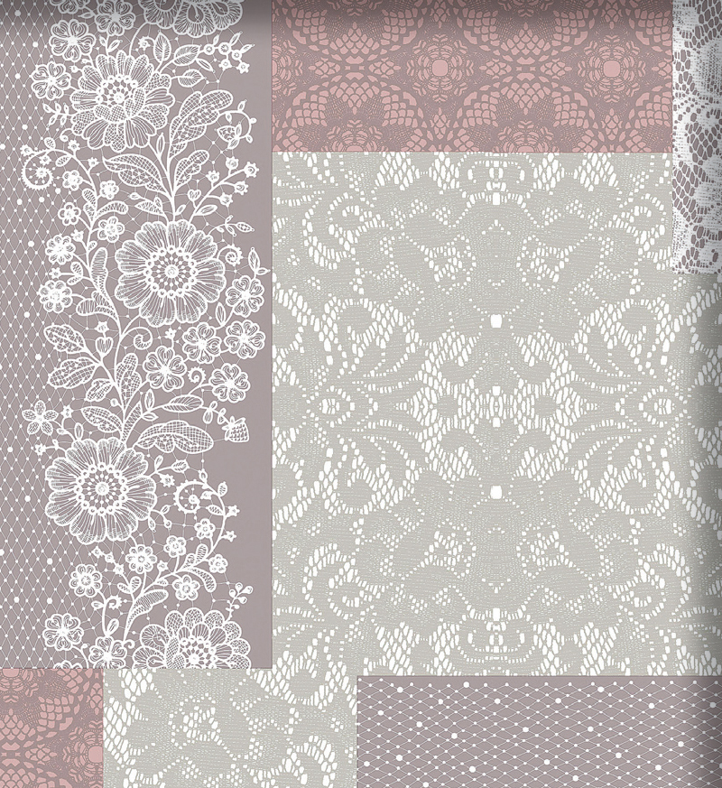 PVC stampato accoppiato a tessuto di polipropilene. Altezza 140 cm. Fantasia Quadretti pizzo rosa. Rotolo da 20 m.