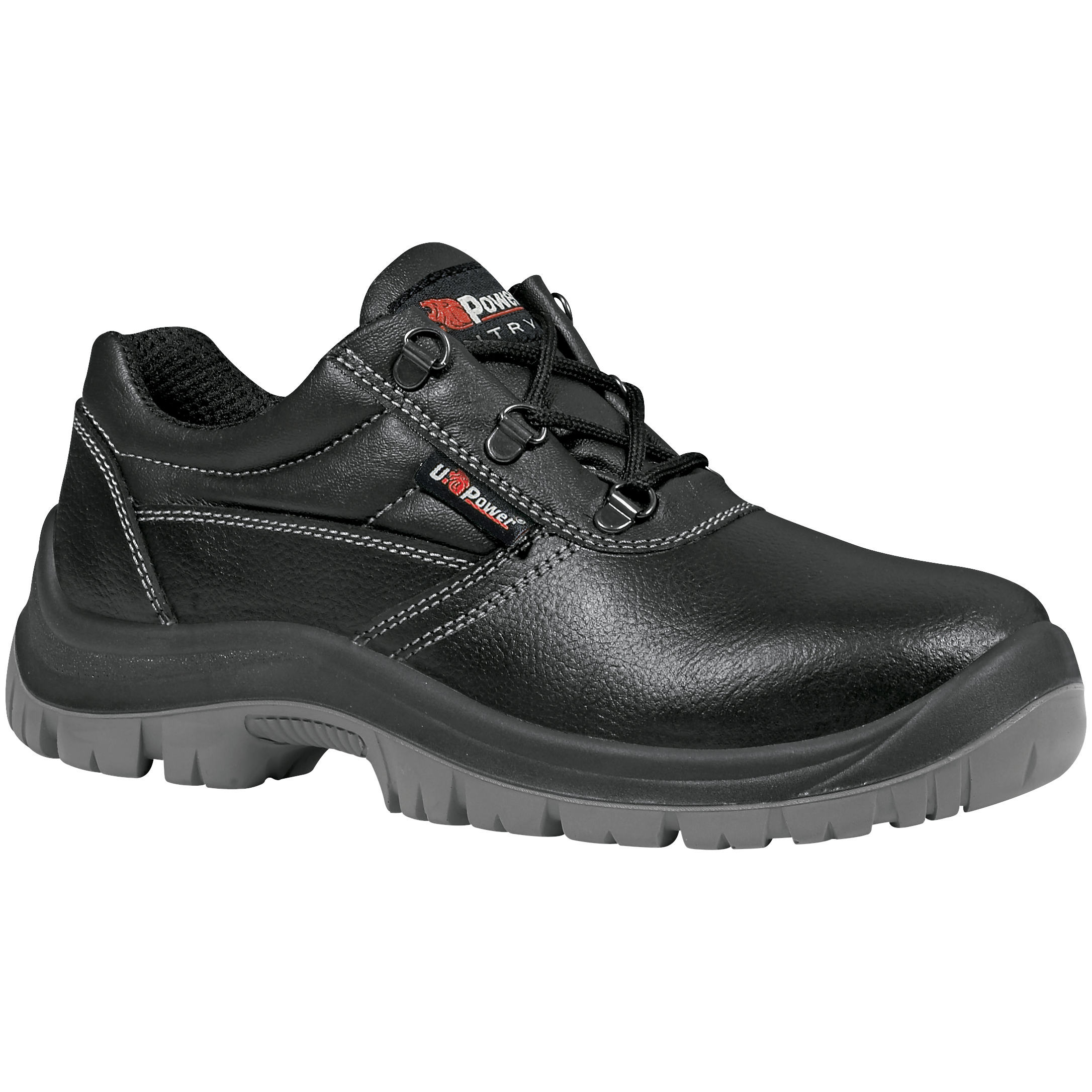 Scarpe antinfortunistiche basse sicure della linea Entry U Power, con tomaia in pelle stampata, idrorepellente, puntale in acciaio, antiperforazione, antiscivolo, lamina in acciaio ergonomica e suola PU/PU, S3 SRC. Taglia n. 45