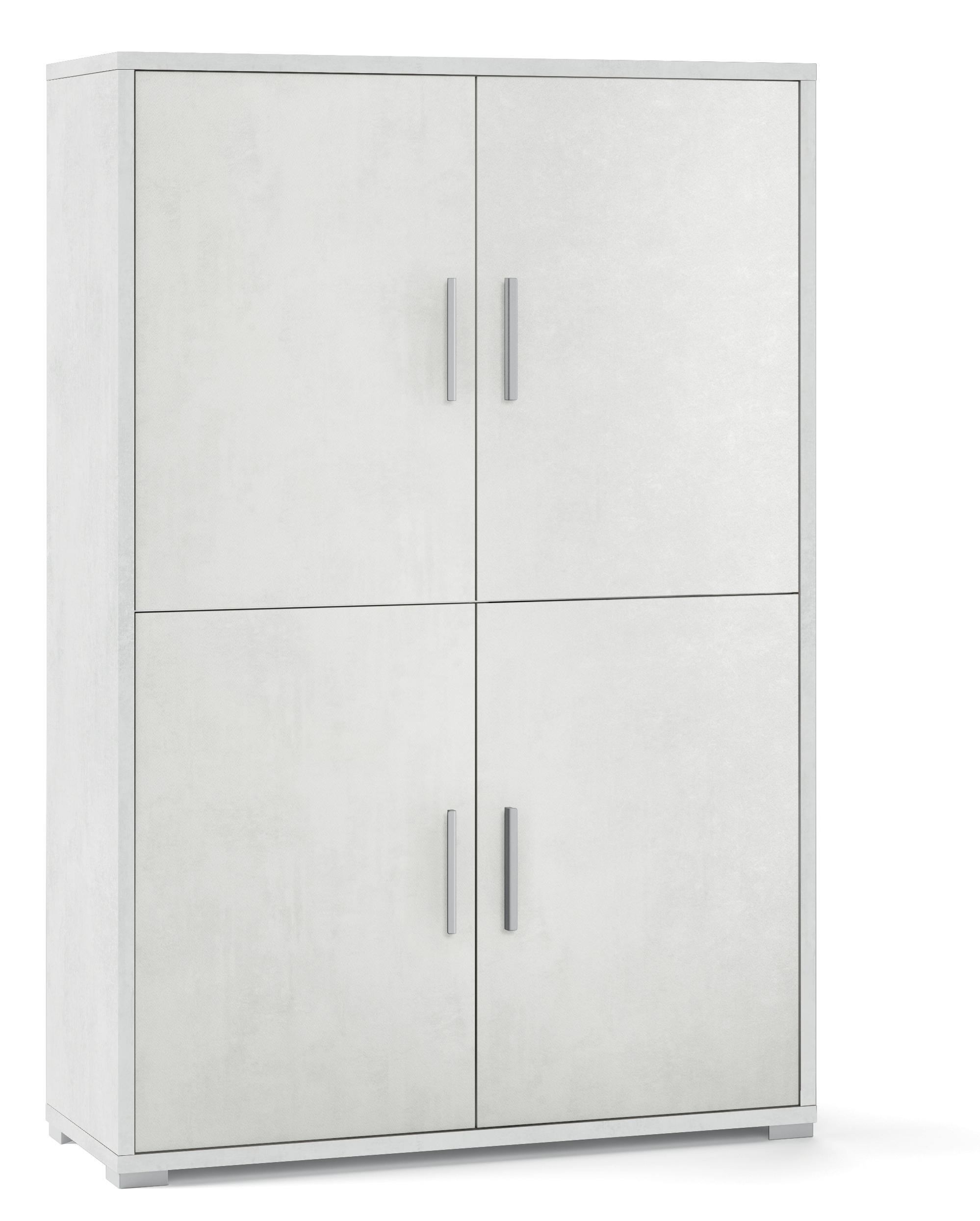 DOUBLE – Struttura sp. 25mm e frontali sp. 16mm, fianchi e top a vista. Contiene 4 ripiani regolabili. Maniglie e piedini verniciati cromo satinato. Mobile in kit. Dimensioni cm 161×108 Colore ossido